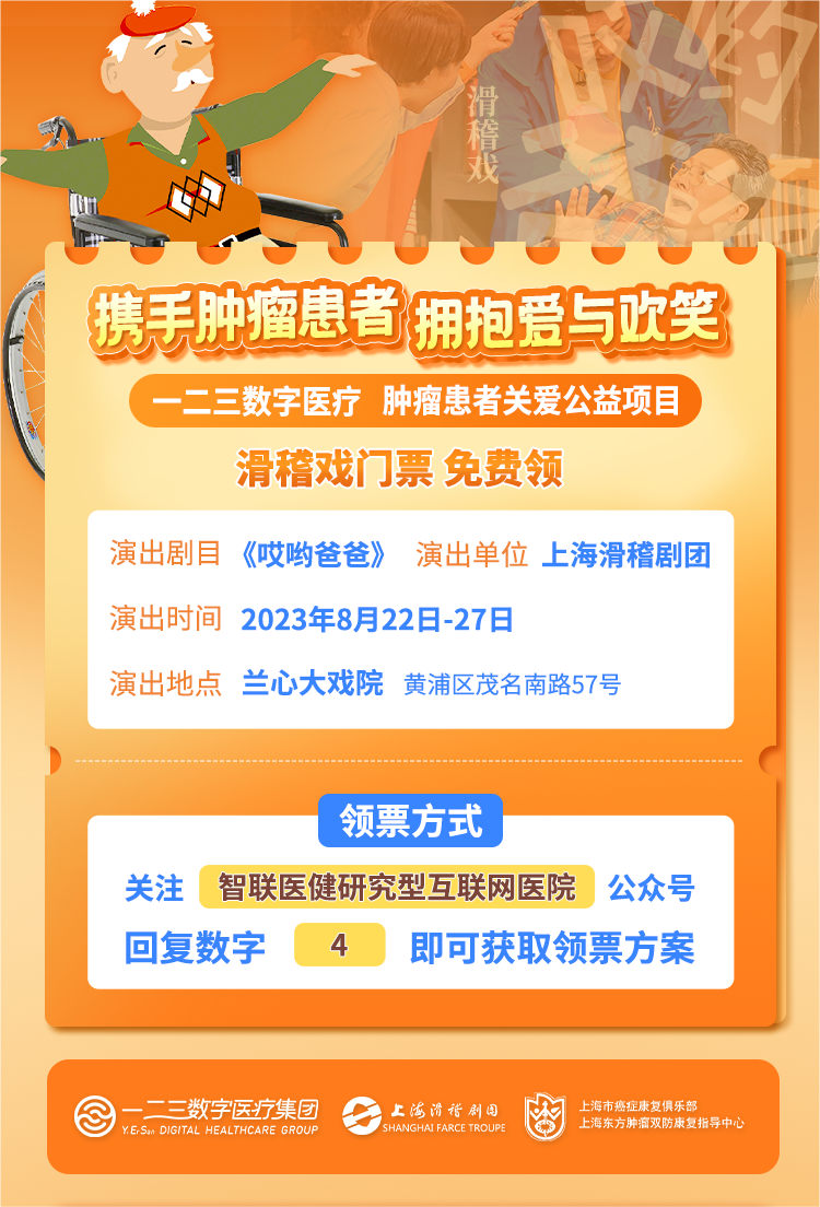 “一二三数字医疗在病程管理中组建专业疗程管理团队配备心理咨询师,配合营养师解决患者对吃的困扰,在提供专业的疾病管理服务之外,鼓励和陪伴患者与家属,以平常心看待疾病,走出家门结交新朋友,充实社会价值的丰度。《哎哟爸爸》公益赠票活动只是一二三数字医疗集团组织的各类社会公益活动之一。”对于此次联合上海滑稽剧团的公益赠票活动,毕佳希望给肿瘤等重疾患者及医护人员们送去一份特别的欢笑和温暖,并呼吁全社会发挥绵薄之力,共同关注特殊人群。